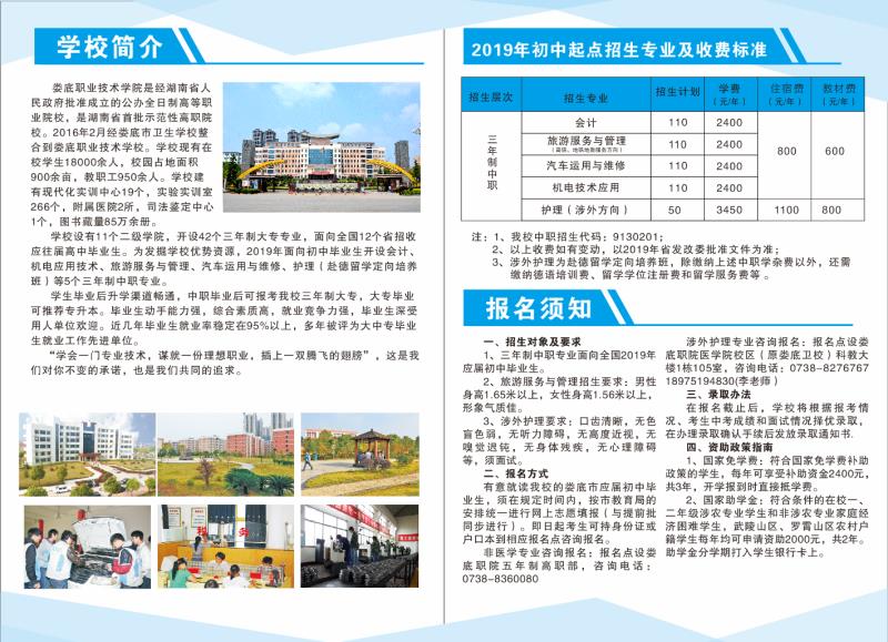 2019年娄职五年制高职部招生简章
