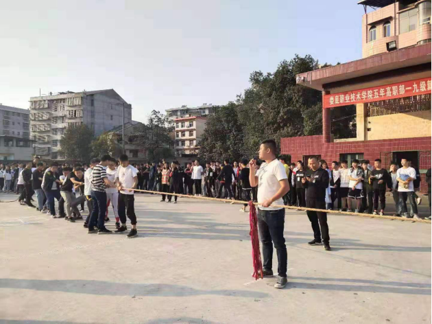 为了丰富学生的文体生活,增强学生的凝聚力、向心力和团体合作精神,展现学生积极向上的精神风貌,五年制高职部在10月份于南苑操场举办了拔河比赛,经过4天的角逐,在10月18日的总决赛中从初赛的31支参赛队伍,决出了最后的前三甲,在大家的欢声笑语中,此次拔河比赛圆满结束。