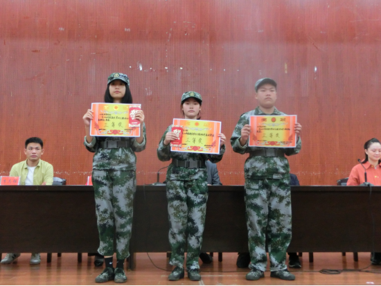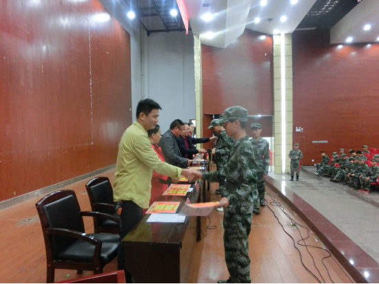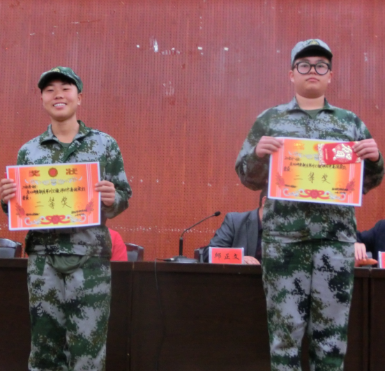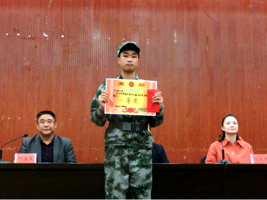 大会第二项,谢跃辉副主任宣读军训会操评比优秀班级、内务整理评比优秀寝室及军训先进个人表彰名单。本次军训队列会操中20级计应三班获一等奖;20级会计一班、20级机电一班获二等奖、20级计应二班、20级计应四班与20级旅游管理班获三等奖。13个班级每班各一名获得优秀个人奖,女寝303、310及男寝401、501、505、507、508、509、510、512、513、602获优秀卫生寝室奖。随后参会领导们为获奖集体及个人颁奖。