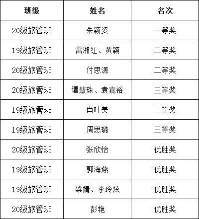在经过多番讨论后,最终决出获奖名单:一等奖1名,二等奖2名,三等奖3名,优胜奖4名。并于12月20日开始进行了为期2天的作品展出,向其他专业学生展示出旅管专业学生的创作成果。