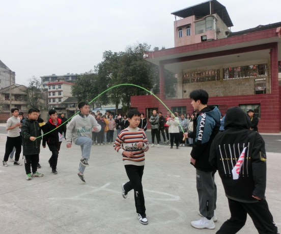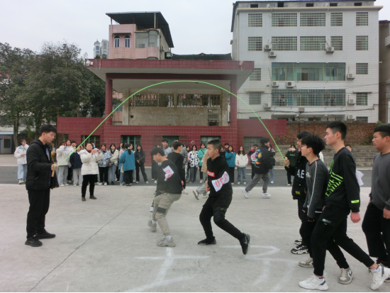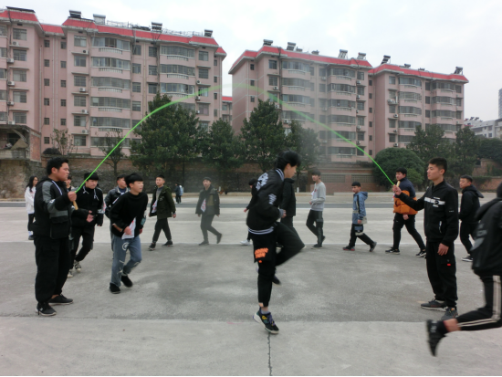 为丰富我校课外活动,增强班级之间联系,进一步促进学生德、智、体全面发展,增强学生体质和同学之间的团结友谊,培养学生的团队协作精神和集体荣誉感;培养学生不怕吃苦,勇于拼搏的精神,五年制高职部特组织“阳光体育,魅力校园”集体跳长绳比赛。