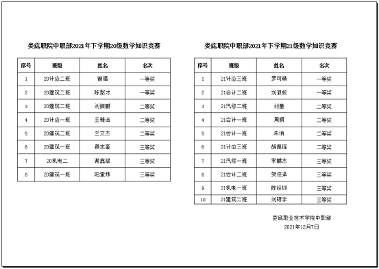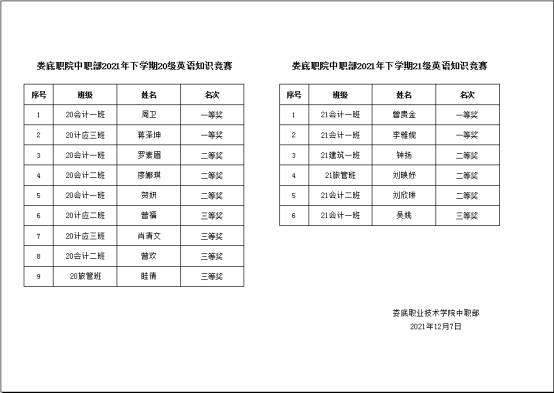 经过三个半小时的阅卷后,由各科老师统一评卷后得出本次语数英知识竞赛的获奖名单:
