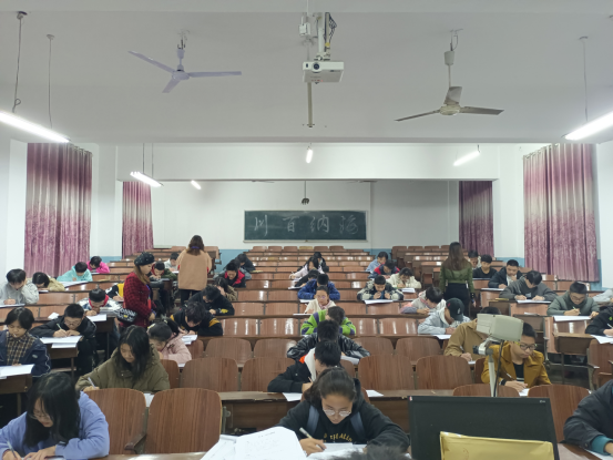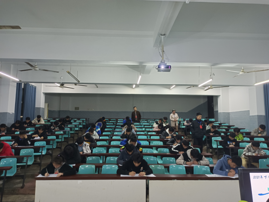 为了体现公平、公正、有效的原则,出卷老师根据学生当前所学知识按不同的内容来制卷,两个年级选手分别安排在三教学楼206教室和实验楼104教室内考试,同一班级的学生座位分配在不同方位。监考老师们也秉着认真负责的态度,全程巡视考场,整个考场秩序井然,切实保证了竞赛成绩的真实性。