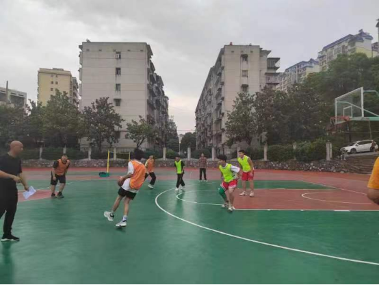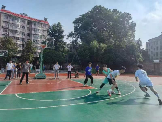 比赛期间,每支队伍准备五名队员,三人上场,两人备援,每场比赛中,一队先打到7分为胜方,以10分钟为限,比赛对手和顺序由队长抽签来决定,保证公正,公平。随着裁判员一声响亮的鸣笛,战幕拉开了,发球,运球,传球,断球,拼抢,只见双方球员不时的弯腰,篮球在他们手下前后左右不停的腾跃,选手们用汗水诠释顽强拼搏、永不言弃的体育精神,“漂亮,好球,太棒了!加油!”啦啦队的同学们在场外激动的呐喊,伴随着篮球入网,欢呼声此起彼伏。