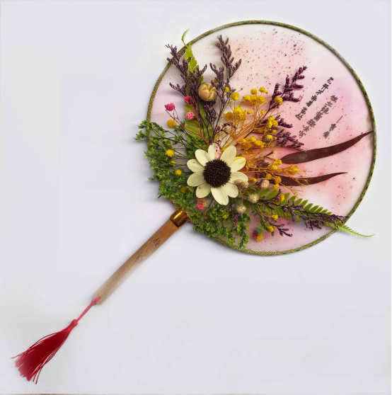 比赛过程中,指导老师详细介绍了团扇的由来、团扇制作材料的变迁,以及绘画团扇扇面的流程和注意事项,随后由学生们结合团扇的特征、发挥自己的想象力和创造力,将书法、水彩画、刺绣、干花等多种元素相结合,制作出精美的团扇。经过评审,在众多作品中荣获一等奖的是肖静姝同学的作品、获得二等奖的是李媛同学和李浩同学的作品,获得三等奖的是曾缘同学、刘媛同学和梁贝同学的作品。