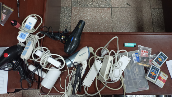 本次宿舍检查工作主要针对学生宿舍楼道供电安全、楼道消防设备配备及宿舍用电安全等方面,并对宿舍内随意安放插排、学生违规使用电器、宿舍楼道易燃物堆积等现象进行整顿。在进行宿舍安全检查的过程中,检查小组针对电吹风、卷发棒等大功率违规电器,管制器具、违禁品等进行收缴,对出现问题的宿舍,检查组认真负责地指出其安全隐患并督促其改正,同学们也意识到问题的严重性并积极配合工作。