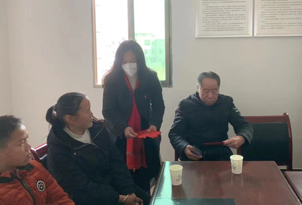 王健龙、中国人寿财险娄底中心支公司副总经理谢劲松、中华联合财险娄底中心支公司副总经理颜伟明一行,看望慰问了驻芷溪村、云溪村帮扶工作队员,乡村干部及20户困难群众,送上慰问红包,送上了党和政府的关怀,祝愿大家度过温暖祥和的新年。王健龙一行认真询问困难群众家庭情况及帮扶需求,协调解决实际问题。座谈会上,芷溪村、云溪村村支两委,驻芷溪村、云溪村帮扶工作队分别介绍了2022年工作开展情况,部署安排下一阶段工作。