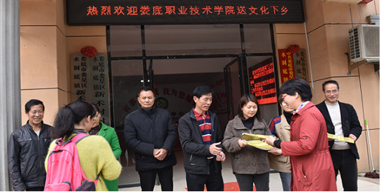 公共课教学部组织服务团队赴娄星区水洞底镇新禾村等乡村送文化下乡,向村民赠送了《中华优秀传统文化精粹》50册,下乡教授给村民们做了“家风文化”“优秀传统文化与文明乡风建设”等讲座,开展文体骨干培训。