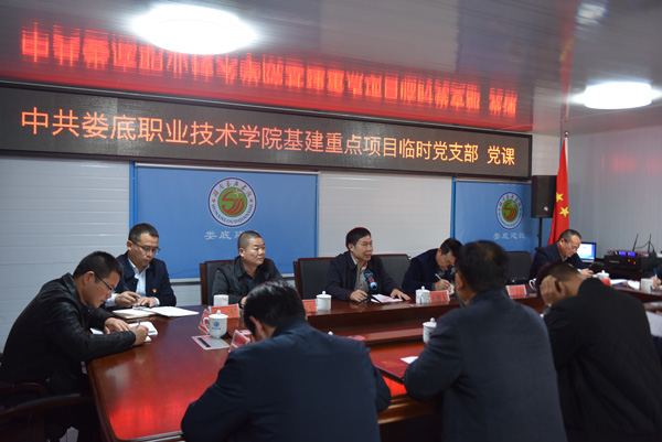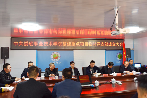 吴文贵宣读了中共娄底职院委员会《关于成立娄底职业技术学院基建重点项目临时党支部的通知》。