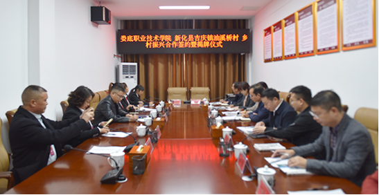 11月12日,我校与新化县吉庆镇油溪桥村举行乡村振兴合作签约暨揭牌仪式。“新化县吉庆镇油溪桥村乡村振兴人才培养基地”、“娄底职业技术学院乡村振兴人才培养实训实践基地”正式揭牌。