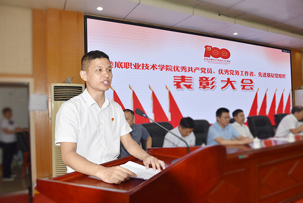 党委副书记王健龙宣读《中共娄底职业技术学院委员会关于表彰优秀共产党员、优秀党务工作者和先进基层党组织的决定》(简称《决定》)、《关于2020年度学校党建工作“示范工程”“先锋工程”先进单位和个人评选结果的表彰通报》,同时传达了中共湖南省委教育工委《关于公布全省高校党组织“对标争先”建设计划第二批项目评选结果的通知》。