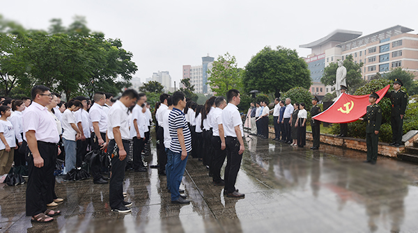 6月30日上午,为庆祝中国共产党成立100周年,在中国共产党早期重要领导人、杰出的共产主义战士、无产阶级革命家、理论家和宣传家蔡和森同志的塑像前,我校举行新党员入党宣誓仪式。全体校领导、各党总支、直属党支部书记、副书记、组织员,党政办、组织部、宣传统战部、纪检监察处、学工部、保卫处、团委等部门负责人,246名2021年上半年发展的新党员参加。虽然天公不作美,但新党员宣誓的热情丝毫未减,在雨中经历了一场难忘的政治“洗礼”。