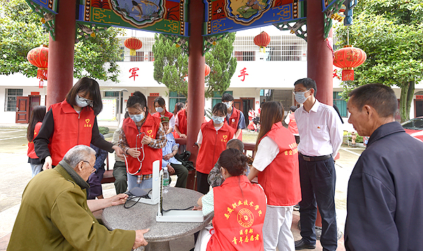 在光荣院,学员向荣军老人们逐一问好,帮助他们清扫一楼坪地,并来到各个楼层协助整理房间内务,搀扶着老人们出来晒太阳,陪老人们拉家常,给老人们按摩捶背、疏通筋骨。来自医学部的学员还充分发挥所长,为荣军老人测量血压、血糖。打扫卫生后,大家为老人们表演节目,有吉他弹唱、小合唱等,当《没有共产党就没有新中国》、《社会主义好》等耳熟能详的旋律响起,老人们也开心地跟着哼唱,退伍老兵还主动上前唱起自己当兵时的红歌歌曲。