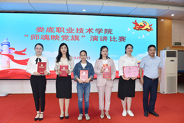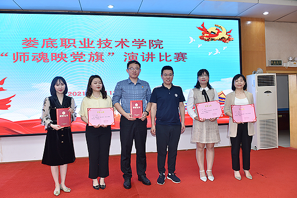 为迎接党的百年华诞,激励广大教职工立德树人,弘扬师德师风,5月12日上午,我校人事处、工会联合举办主题为“师魂映党旗”的演讲比赛,由各部门、二级学院推选的15名教师参加此次比赛。党委副书记、校长张征澜,党委副书记王健龙,党委委员、副校长周志和、申晓伟、欧芳出席,各部门、二级学院老师共180余人现场观摩。