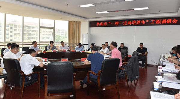 为认真贯彻落实中央、省委、市委关于重视基层、关心基层、支持基层的部署安排,切实加强村干部源头建设和带头人队伍建设,确保村干部定向培养生健康成长,5月7日,市委常委、组织部长尹华凯率市委组织部、市财政局、市民政局、娄星区委组织部、双峰县委组织部负责人,来到我校开展“一村一定向培养生”工程调研。我校党委书记朱忠义,党委副书记、校长张征澜,党委委员、副校长金建雄、周志和、游新娥,及相关部门、院系负责人参加了座谈会。会议由市委组织部副部长、市委两新工委书记谌铁辉主持。