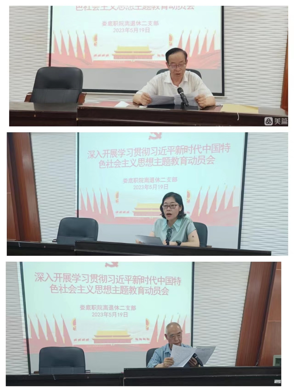 5月19日,天朗气清,惠风和畅。娄底职院离退休二支部在综合楼101室召开“深入开展学习贯彻习近平新时代中国特色社会主义思想主题教育动员会”。会议由支部书记宁振华同志主持,南校区全体离退休同志及学校离退休党总支副书记朱春莉参加了会议。