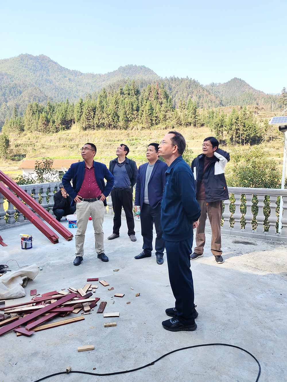 11月27日上午,娄底职院党委副书记、校长张征澜,副校长申晓伟、组织部长吴文贵一行到云溪村调研指导乡村振兴工作,对正在进行的村部房屋建设项目和羊肚菌种植基地项目给予了现场指导。