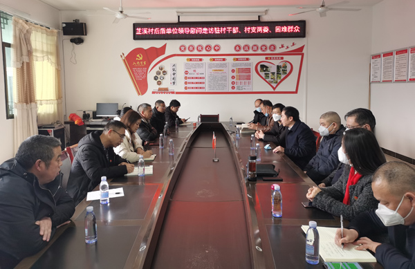 王健龙、中国人寿财险娄底中心支公司副总经理谢劲松、中华联合财险娄底中心支公司副总经理颜伟明一行,看望慰问了驻芷溪村、云溪村帮扶工作队员,乡村干部及20户困难群众,送上慰问红包,送上了党和政府的关怀,祝愿大家度过温暖祥和的新年。王健龙一行认真询问困难群众家庭情况及帮扶需求,协调解决实际问题。座谈会上,芷溪村、云溪村村支两委,驻芷溪村、云溪村帮扶工作队分别介绍了2022年工作开展情况,部署安排下一阶段工作。
