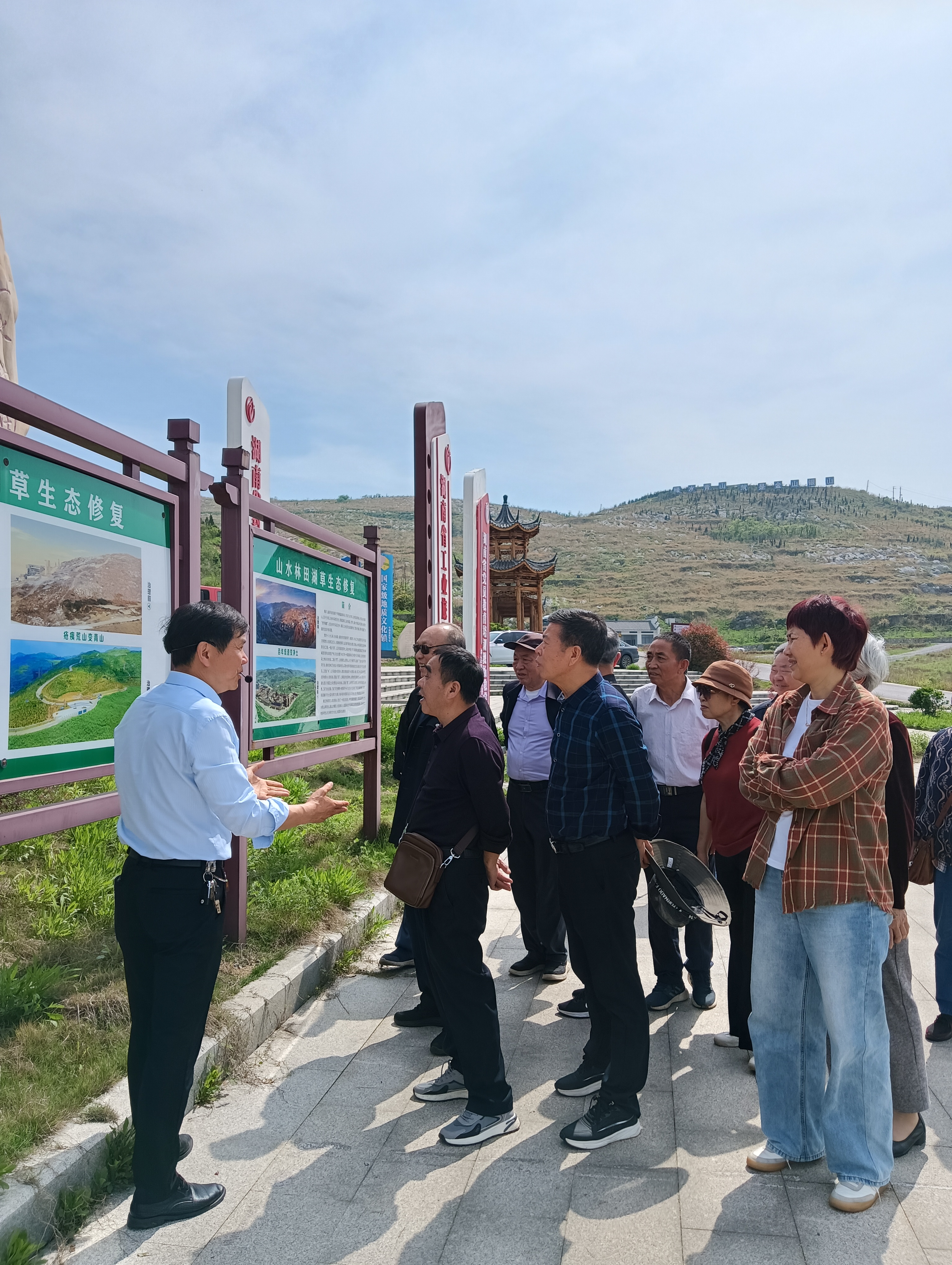 在冷水江锡矿山,老党员们实地察看百年矿区生态修复治理成果。昔日因长期开采满目疮痍、污染突出的工矿废墟,经过系统治理,完成矿渣集中填埋、砷碱渣无害化处理、河道疏通及大面积植树复绿,区域植被覆盖率大幅提升,水体重金属污染物浓度显著下降。如今矿区绿意盎然,花海、草海、石林等景观错落有致,荒山焕发生机,彻底实现从“工业疮疤”到“生态绿洲”的华丽蜕变,老党员们真切感受到生态惠民、为民造福的扎实成效,对正确政绩观有了更直观深刻的理解。